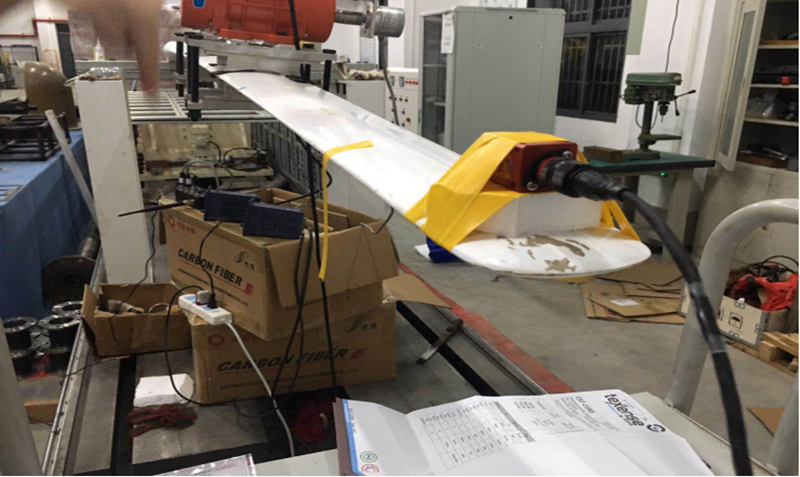 2020年8月,为某客户提供风力叶片应变、运动轨迹分布监测与测量服务。项目特点为基于无线分布式测量技术,测量应变、运动轨迹以及转速。无线部分采用德国BEANAIR的四通道无线数采,运动轨迹采用六轴惯导测量,该项目现场部分已完成培训,后期软件仍在实施中。